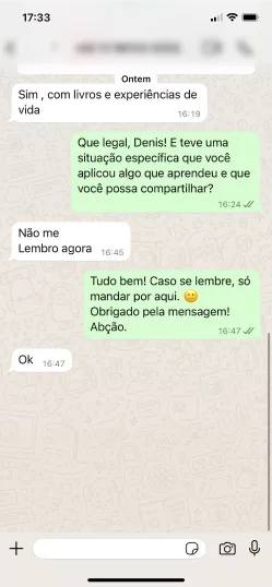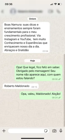 comunidade de alunos no WhatsApp para tirar dúvidas e trocar experiências.